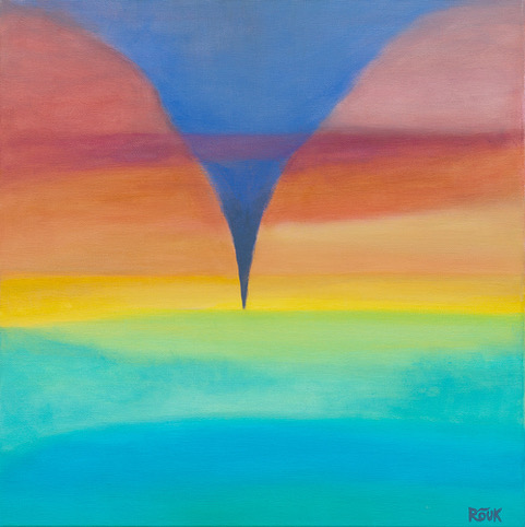 Maalilm. 1. 2023 õli, lõuend/70×70 cm/. Maalilm 2. 2023 õli, lõuend/70×70 cm/. Seisud 1. 2022 õli, lõuend/100×100 cm/. Seisud 2. 2022 õli, lõuend/100×100 cm/. Paradiis. 1992 õli, lõuend/150×135 cm/.